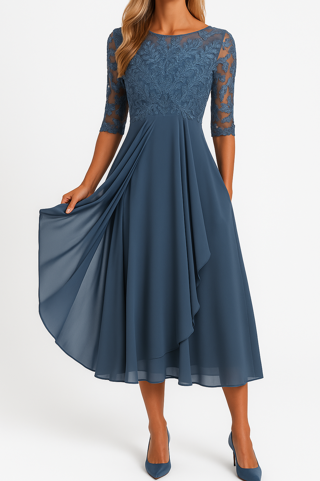 Elegantní šaty pro družičky dámské s výstřihem do V a splývavým materiálem