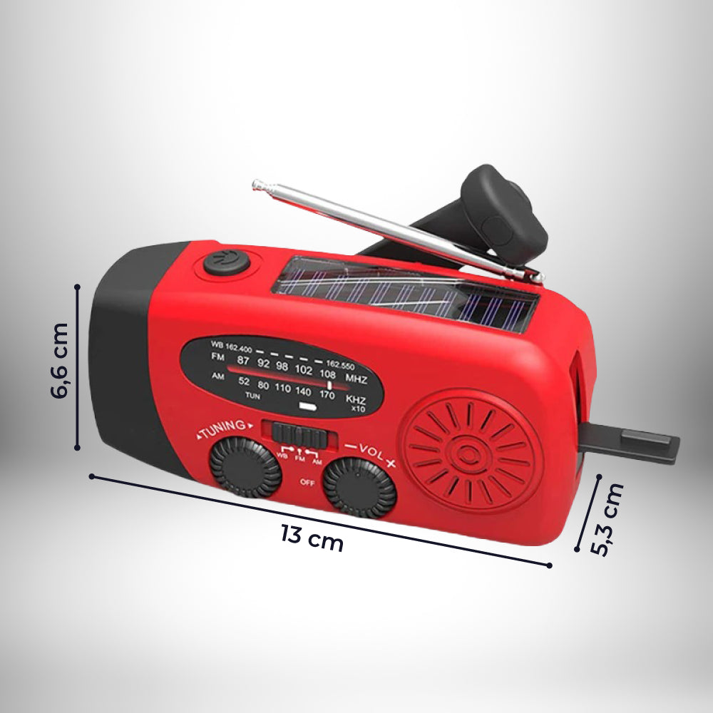 Dynox je vybaven integrovanou 2000 mAh baterií. Můžeš používat svítilnu, rádio a nabíjecí funkci – a to vše bez zásuvky.