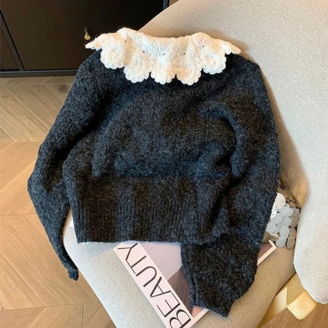 Plyšový pletený svetr s krajkovým límcem - Alicia