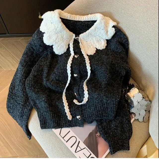 ✔ Krajkový límec: Alicia má krásný krajkový límec, který této pohodlné pletené bundě dodává nádech ženskosti a elegance.