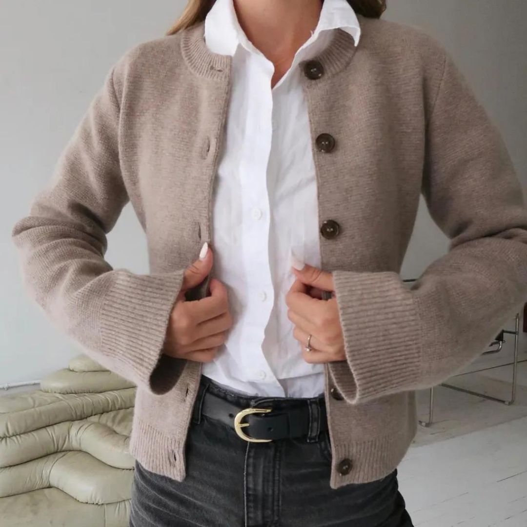 Eudocia je dokonalý klasický pletený svetr pro ženy, které oceňují jednoduchost a styl. Tento svetr má nadčasový design s knoflíkovým zapínáním pro rafinovaný a všestranný vzhled. Vyroben z vysoce kvalitních materiálů.