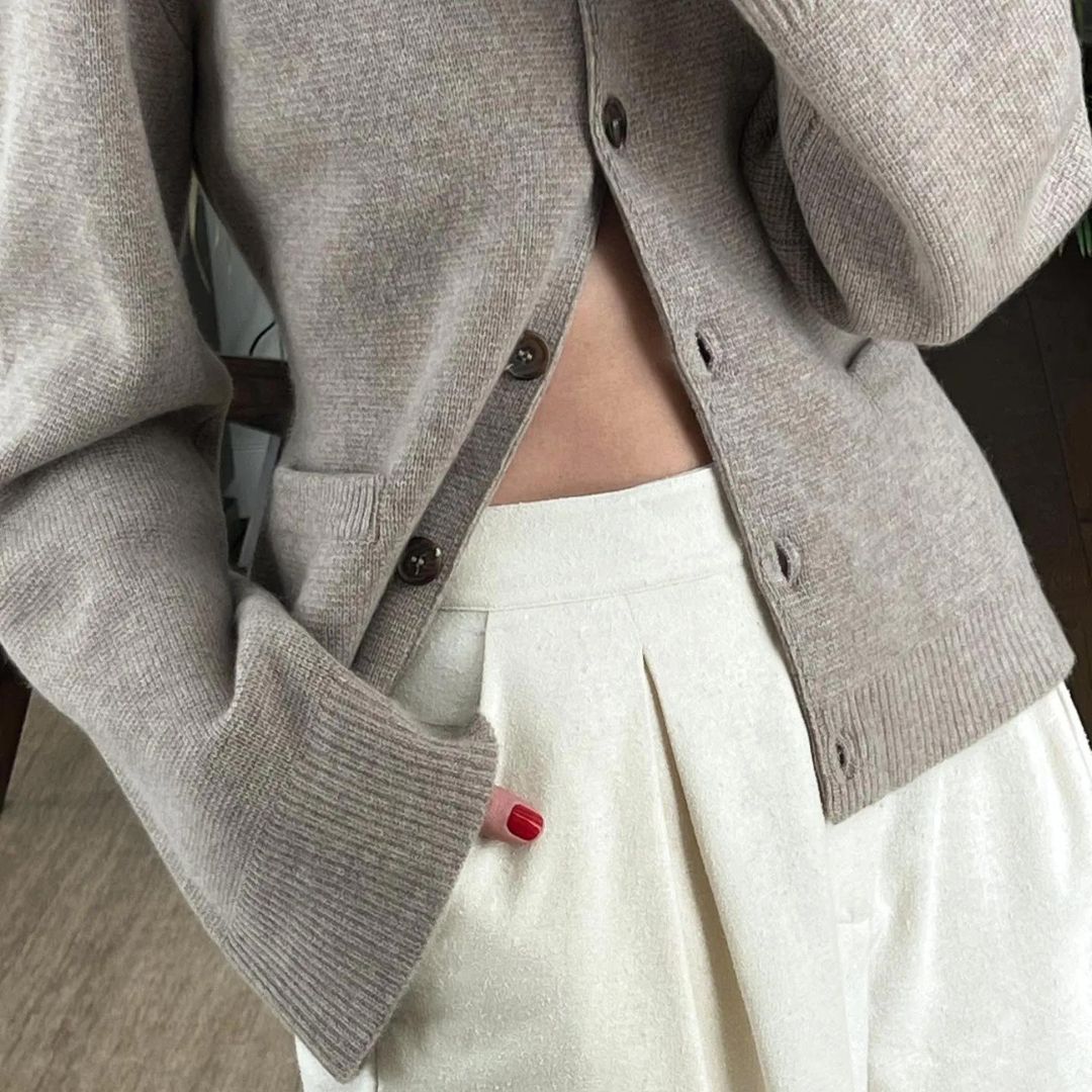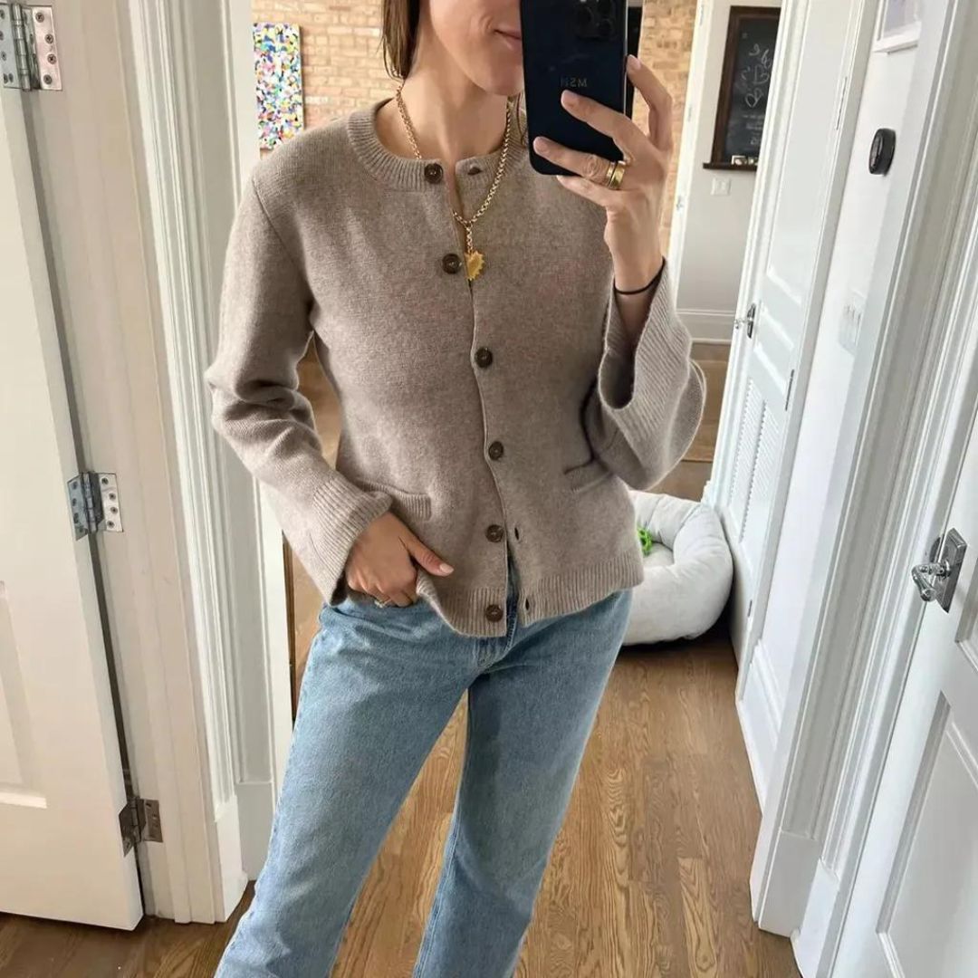 ✔ Klasické zapínání na knoflíky: Eudocia má tradiční design knoflíků, který pletenému svetru dodává nádech rafinovanosti a elegance, perfektní pro každou příležitost.