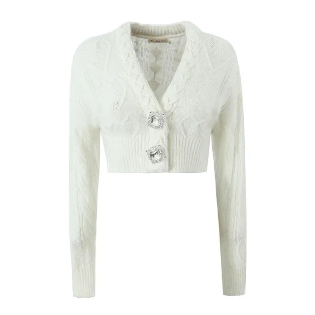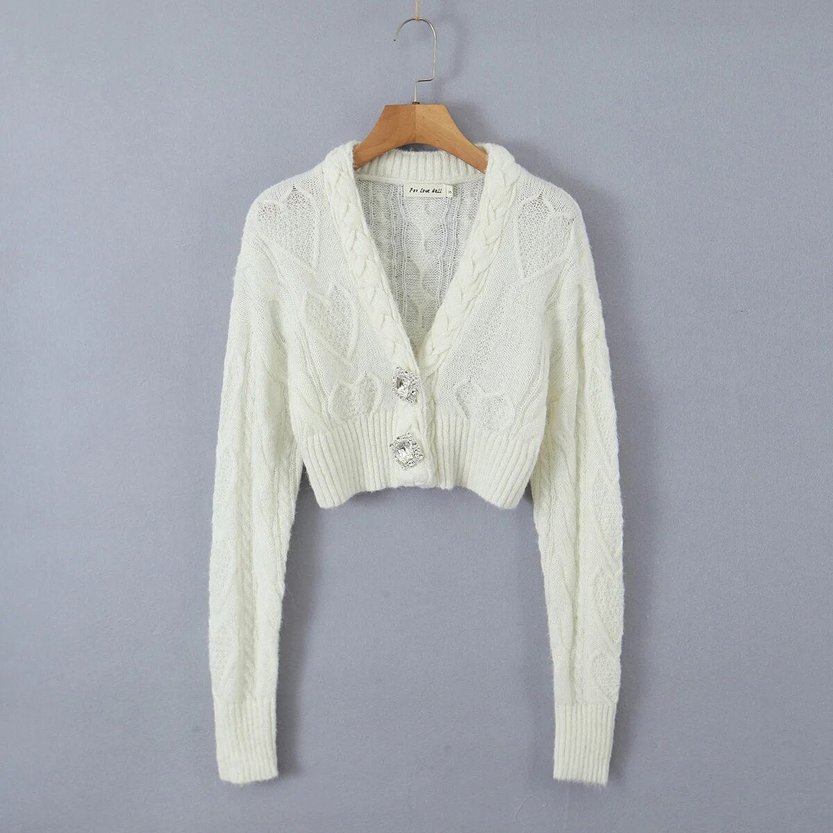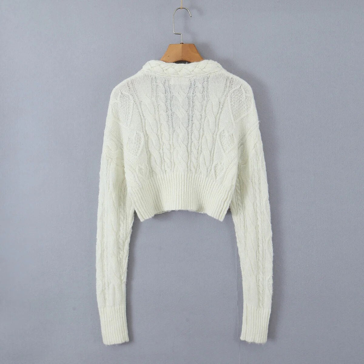 Módní krátký pletený svetr se vzorem copánků - Betty