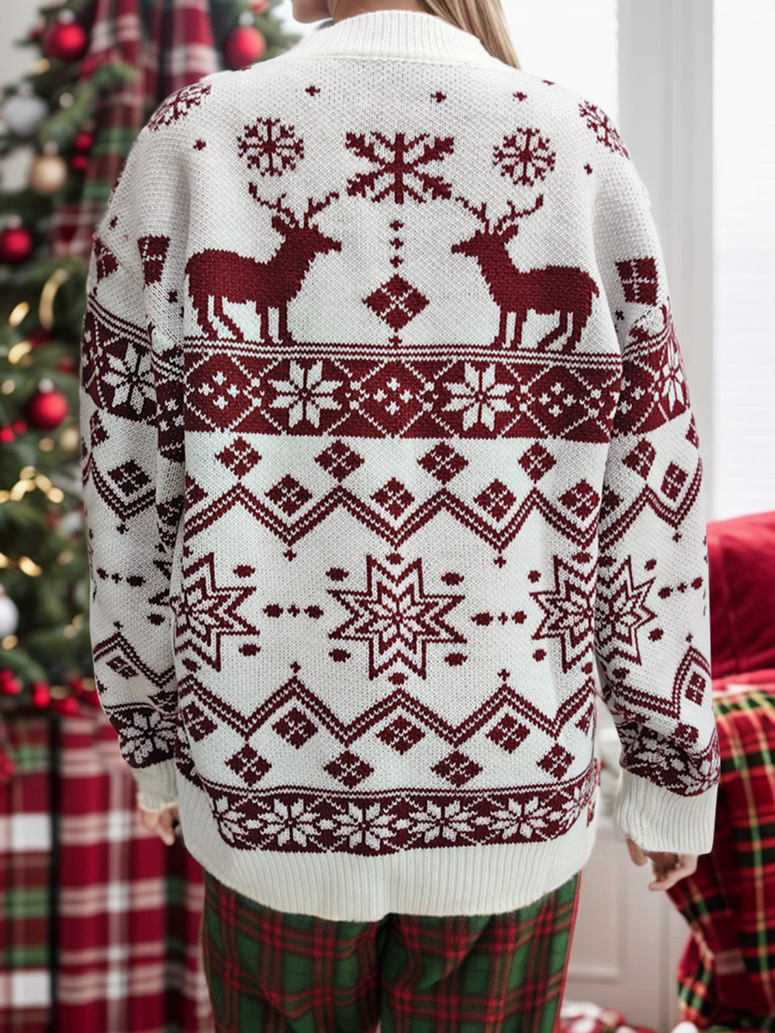 Díky hravému kontrastnímu vzoru sněhových vloček nabízí tento módní svetr pohodlí a teplo v chladnějších měsících.