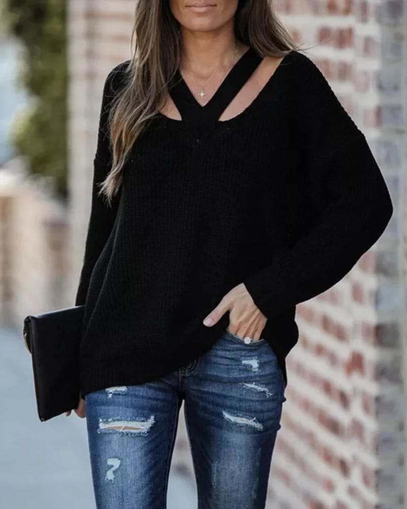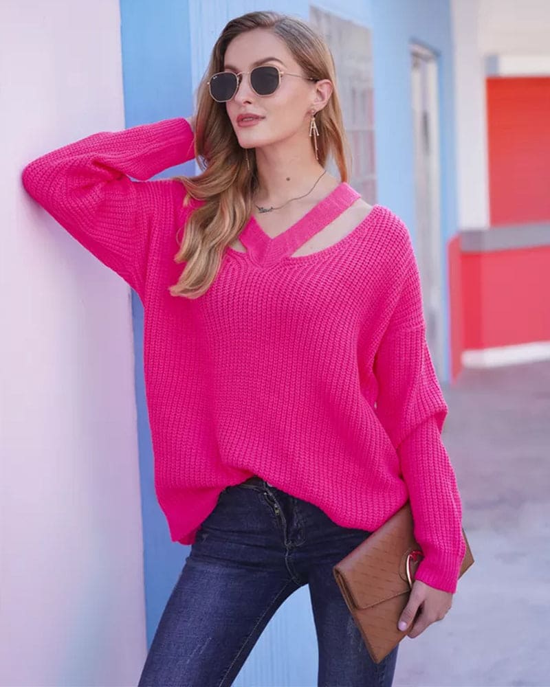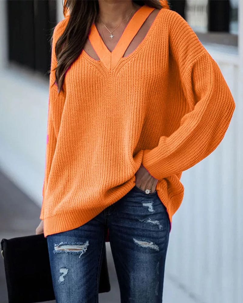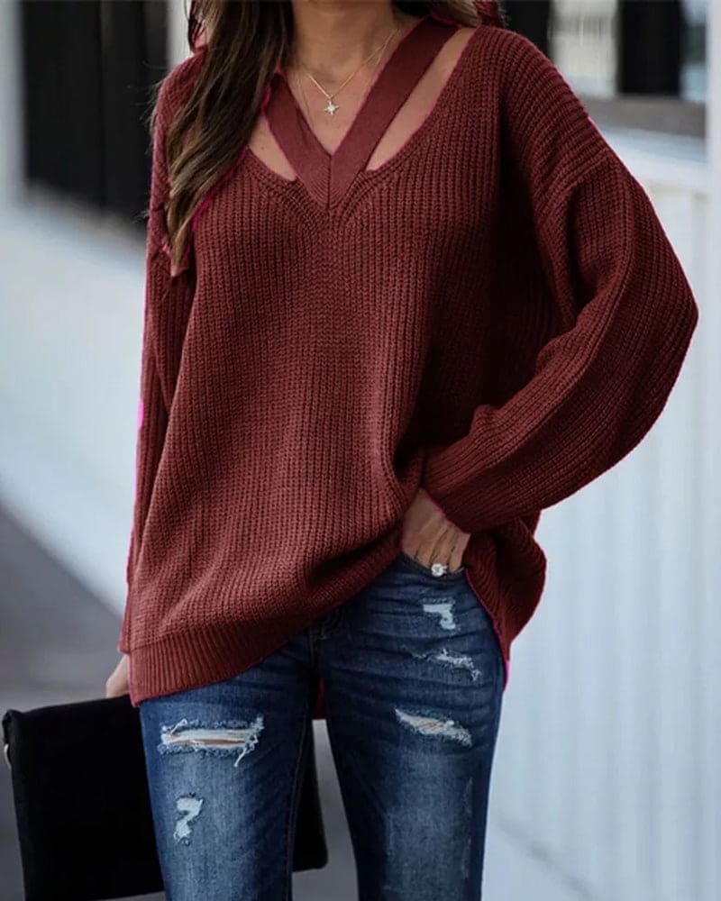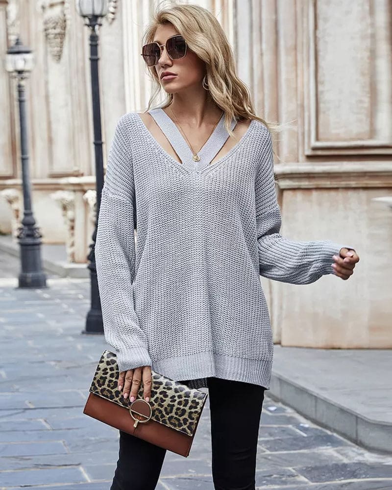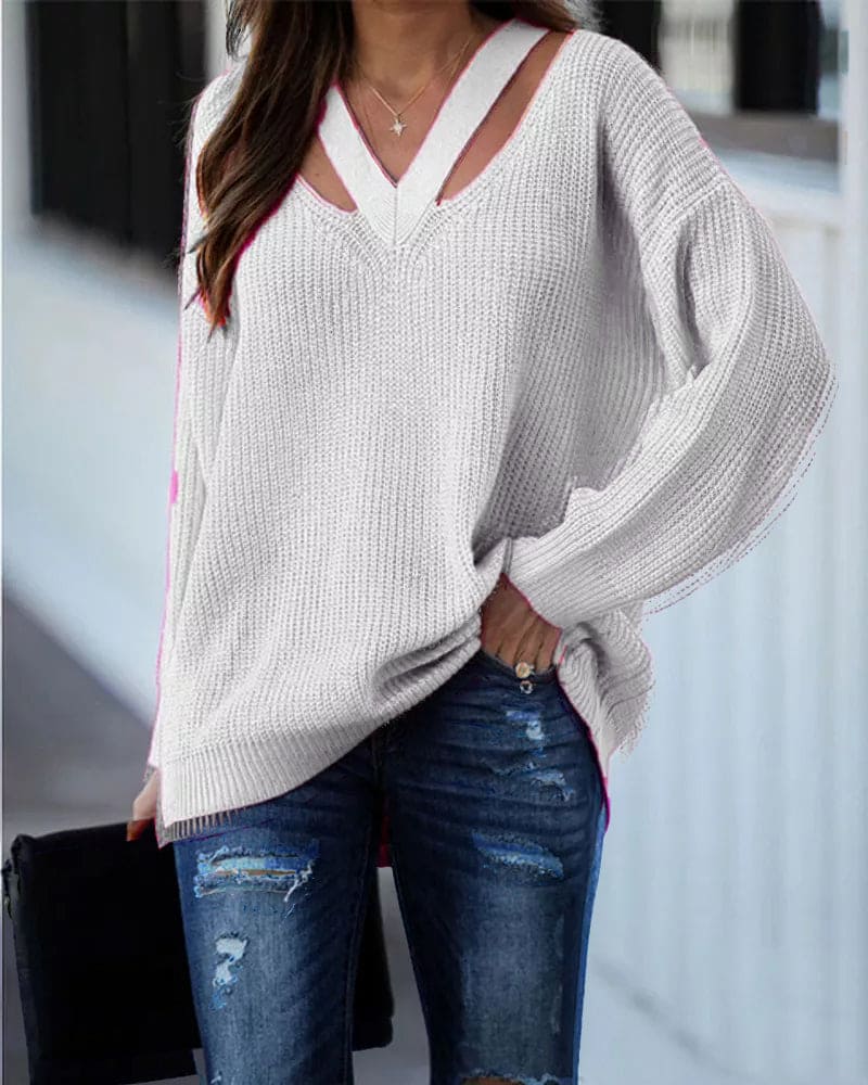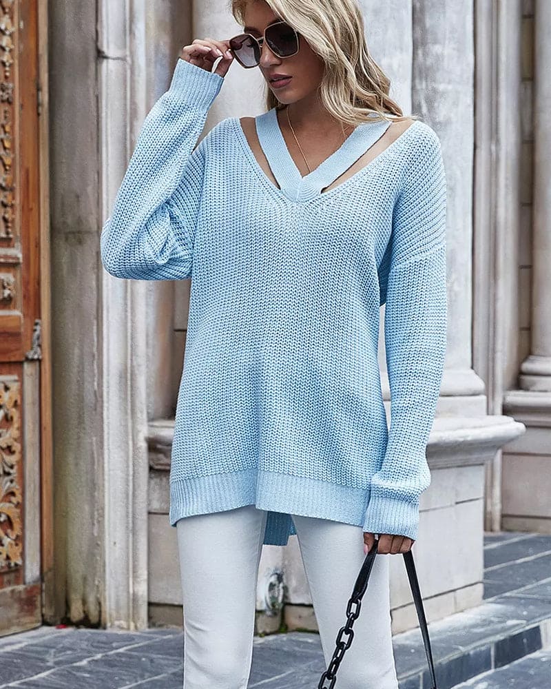 Opdag den perfekte blanding af komfort og stil med Devako Eva lang sweater med smigrende V-udskæring