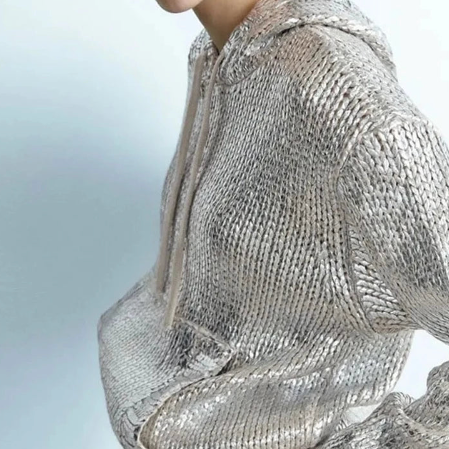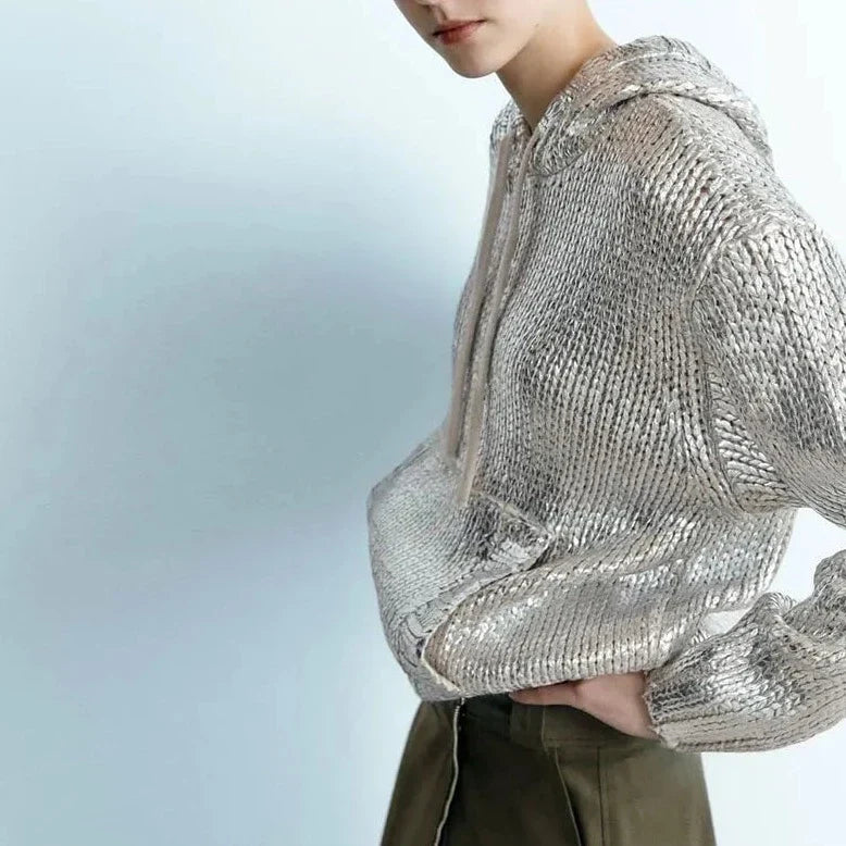 Tag din stil til det næste niveau med Devako Zilda Silver Metallic Hoodie Sweater