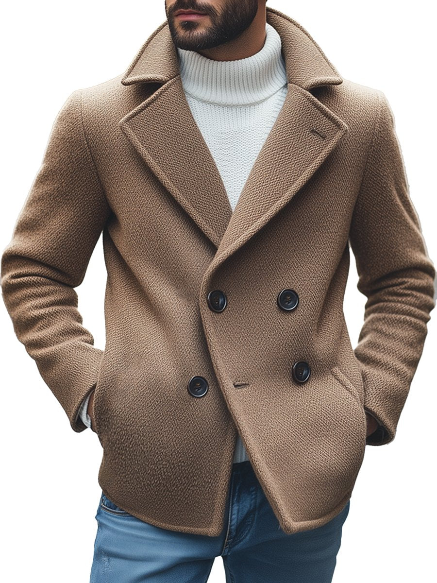 Herrefrakke i uld med retro-hoodie og dobbelt knaplukning - tidløs elegance