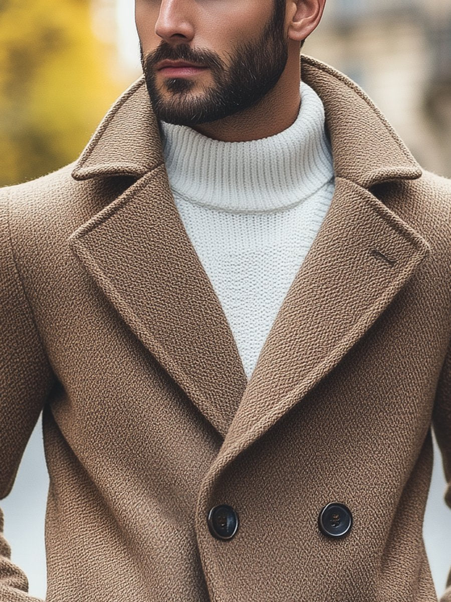 Løft din stil med den retro uldfrakke med hætte og dobbelt knaprække til herrer