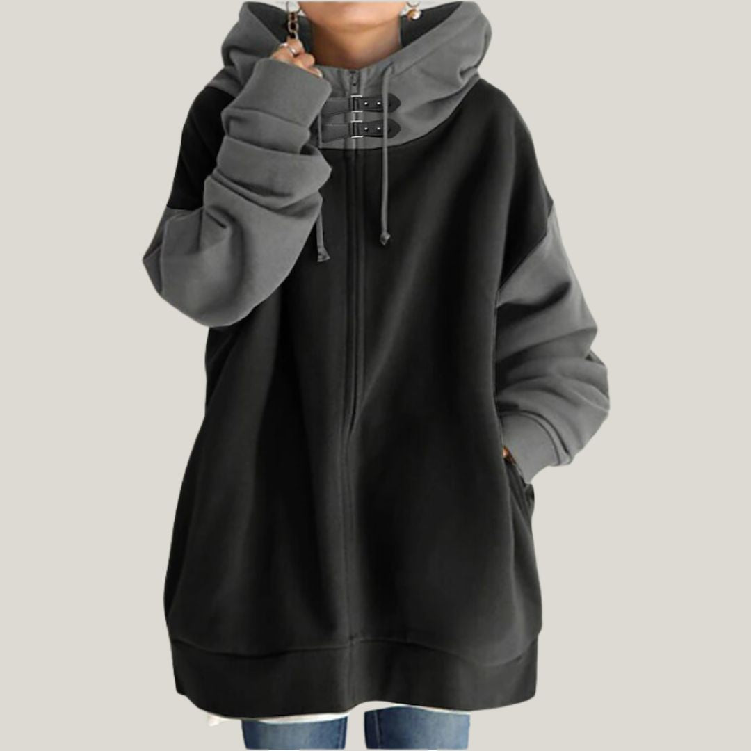 Fern er den perfekte oversized hættetrøje med snøre til kvinder, der værdsætter komfort uden at gå på kompromis med stilen. Med sin løse pasform og justerbare hætte med snøre sikrer denne hoodie et hyggeligt og afslappet look.