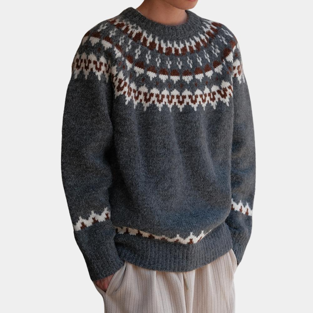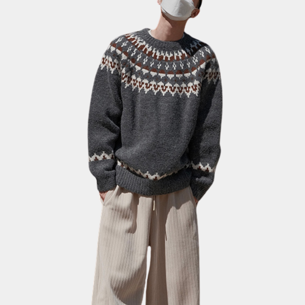 Giv din vintergarderobe personlighed med Tristan Men's Warm Knitted Sweater. Dette unikke stykke tøj kombinerer moderne stil med tidløs varme. Det markante geometriske mønster giver ethvert outfit et strejf af individualitet og gør den til et alsidigt valg til forskellige lejligheder. Trøjen, der er fremstillet med stor opmærksomhed på detaljer, garanterer både komfort og moderigtig æstetik.
