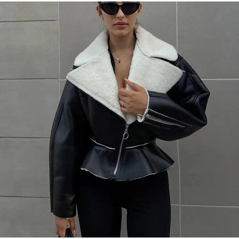 Le design patchwork unique et la silhouette courte donnent à cette veste un look tendance et moderne.