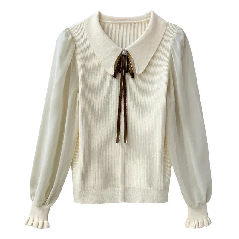 Maglione elegante in chiffon | Maglione elegante con maniche a lanterna e colletto
