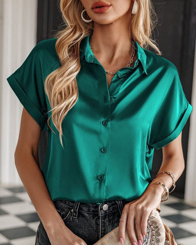 Devako Fleur | Camicetta a maniche corte con chiusura a bottone in raso