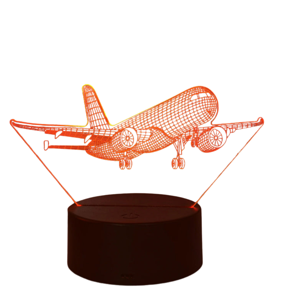 3D nočné svetlo model lietadla – napájané cez USB, 7 farieb, dekoratívne na sviatky