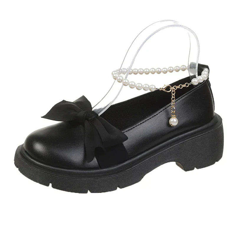 Meret - Biele mokasíny s mašľou a perlovým náhrdelníkom