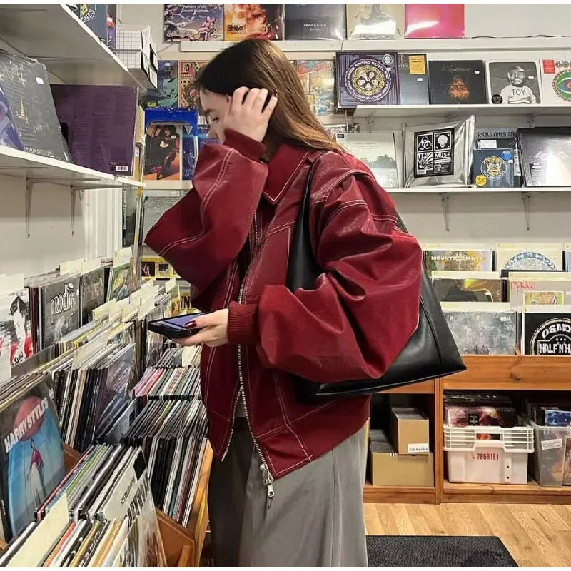 Moderné detaily: Klopový golier a zips dodávajú klasickej koženej bunde moderný nádych.