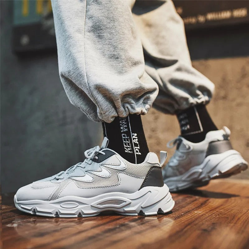 Oživte svoj každodenný vzhľad našimi teniskami. Tieto tenisky kombinujú najnovší štýl s bezkonkurenčnou funkčnosťou, s hrubou, polstrovanou podrážkou, ktorá poskytuje vynikajúce pohodlie a zlepšuje vaše držanie tela. Perfektné pre aktívneho muža, ich protišmykový dizajn zaručuje bezpečnosť a istotu pri každom kroku.