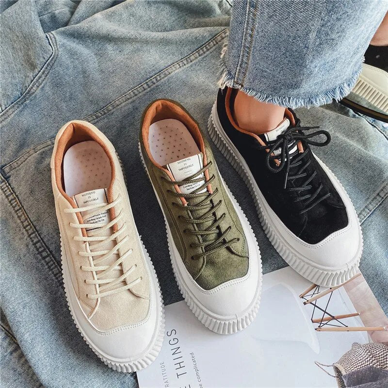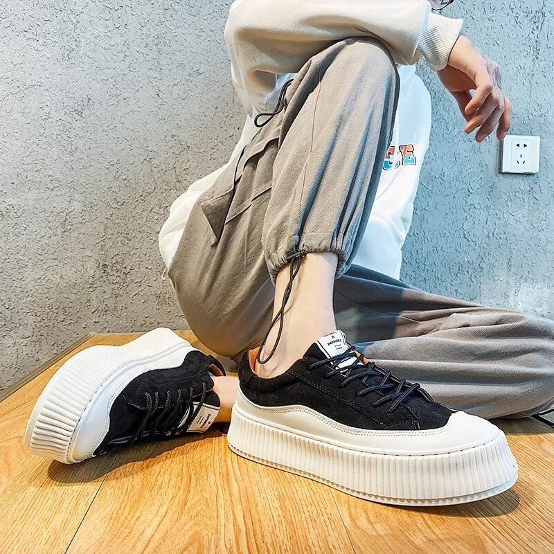 Vstúpte do sveta neporovnateľného pohodlia a štýlu s našimi platformovými teniskami. Tieto tenisky redefinujú ležérny luxus a kombinujú mäkký pocit semišu s hrubou podrážkou, ktorá tlmí každý krok. Zvýšená platforma nielenže zväčšuje vašu výšku, ale zabezpečuje aj pohodlnú chôdzu, či už sa prechádzate po mestských uliciach alebo si užívate oddychový deň vonku.
