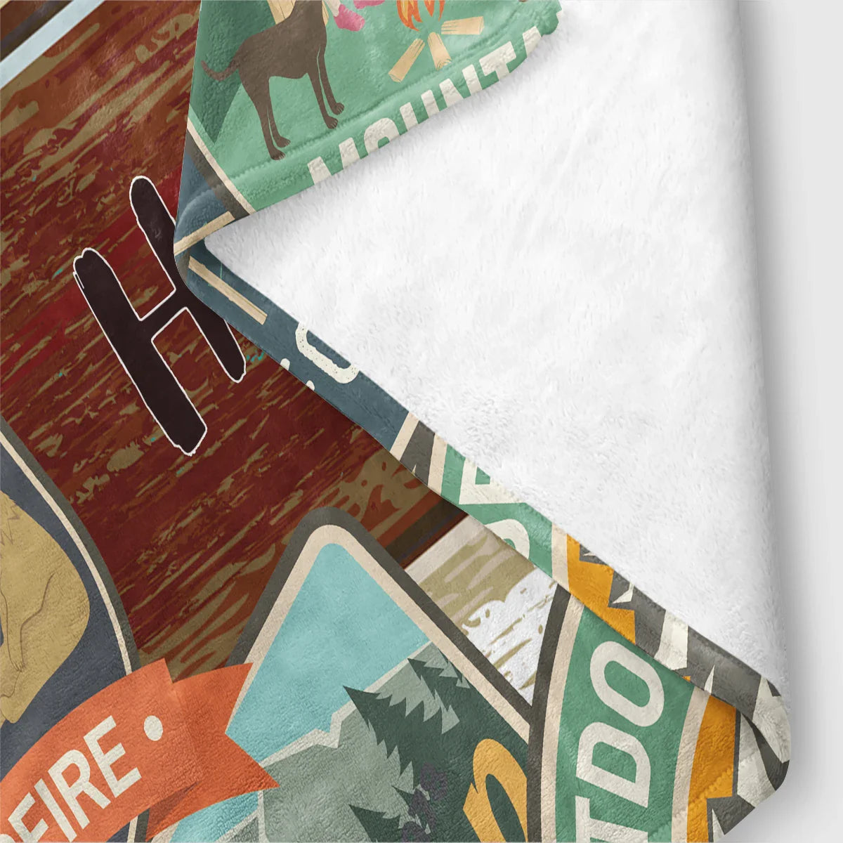 Plyšová deka CozyTrail s motívom kempovania a lesa spája teplo, útulnosť a štýlový dizajn.