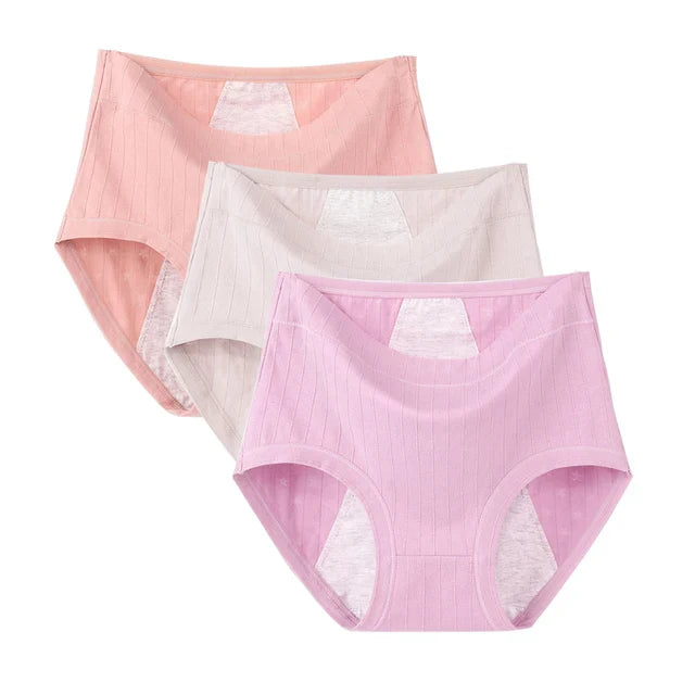 Táto sada 3 nohavičiek je vyrobená z jemnej, priedušnej bavlny a ponúka inovatívnu technológiu proti presakovaniu, ktorá poskytuje spoľahlivú ochranu.