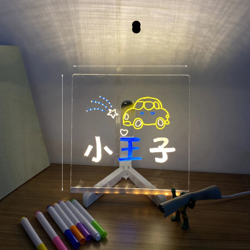 Objavte DreamNote, inovatívnu LED lampu, ktorá spája kreativitu a funkčnosť. S touto stierateľnou poznámkovou tabuľou môžu deti nechať svoju fantáziu voľne plynúť kreslením alebo písaním správ. Perfektná ako nočné svetlo, dodáva každej izbe nádych mágie a zároveň poskytuje jemné svetlo pre pokojné noci. Je ideálnym darčekom na narodeniny a výnimočné príležitosti a podnecuje kreativitu najmenších.