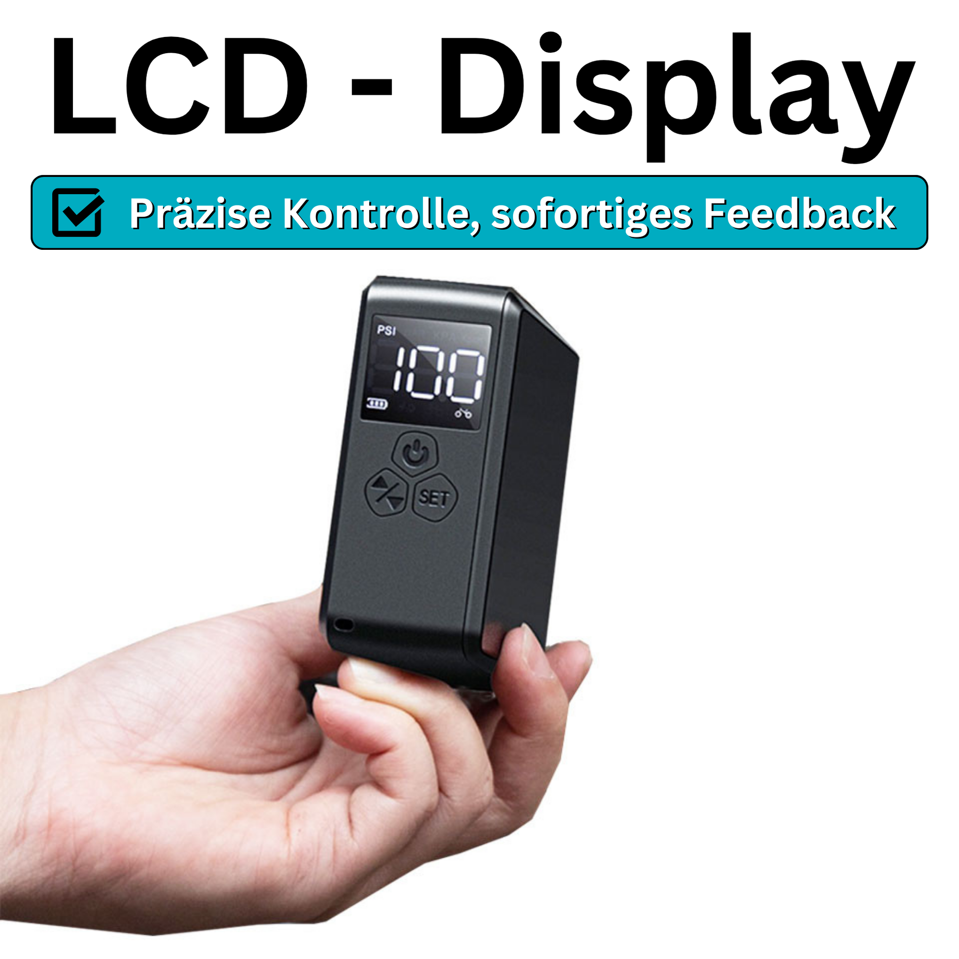 Objav slobodu s našou mini elektrickou vzduchovou pumpou – tvojím silným pomocníkom na cestách. Zabudni na namáhavé ručné pumpovanie. S tlakom až 10,5 bar robí naša pumpa nafukovanie hračkou. Odolná batéria a USB-C pripojenie zabezpečujú neustálu pripravenosť. Presný LCD displej a univerzálne nadstavce ti dávajú plnú flexibilitu – či už bicykel alebo nafukovacia matrac, si perfektne vybavený. Malá, výkonná, mobilná – uľahči si život!