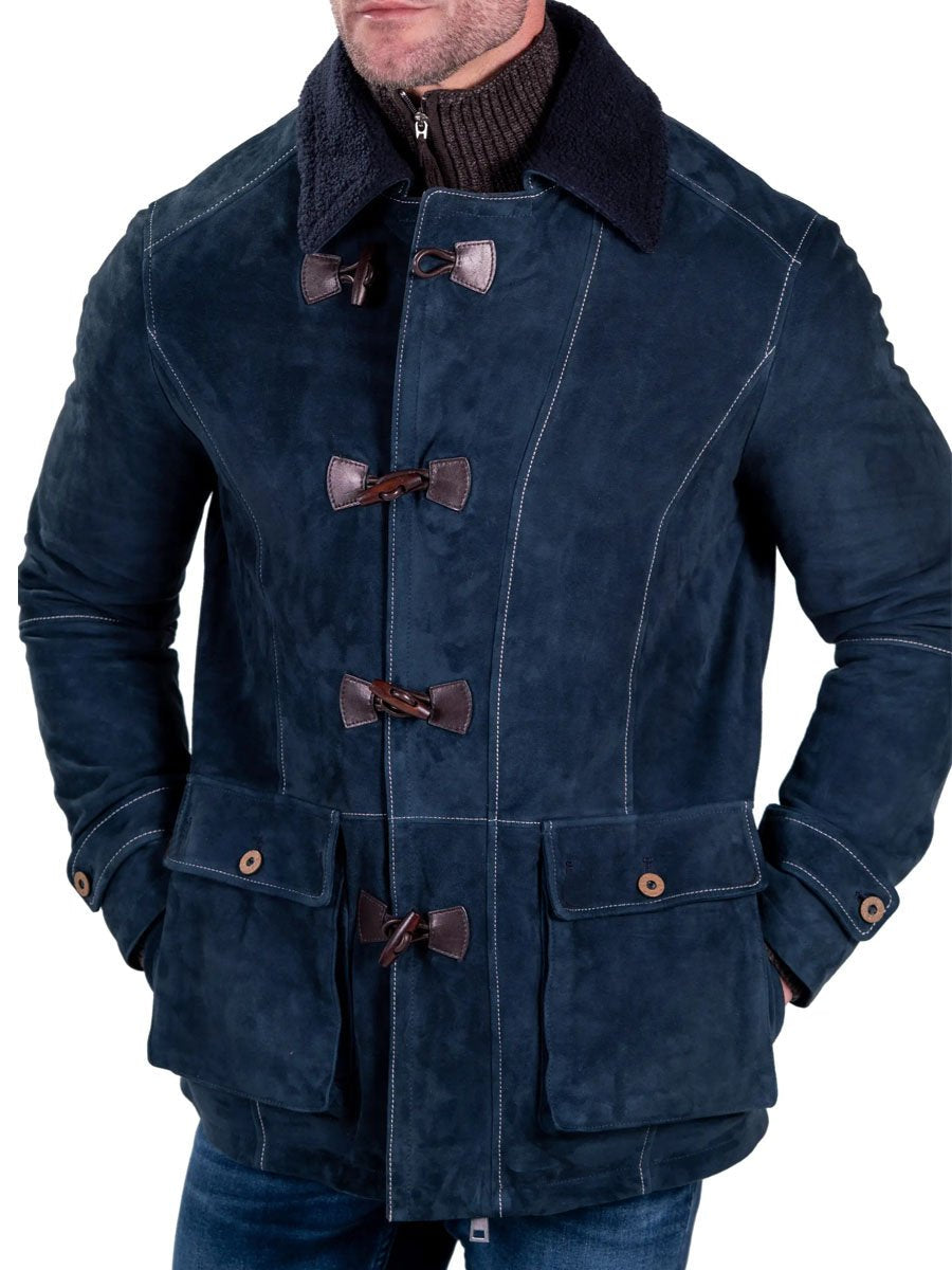 Pánska bunda s jednoradovým zapínaním, dvojitým vreckom, zateplená semišová bunda