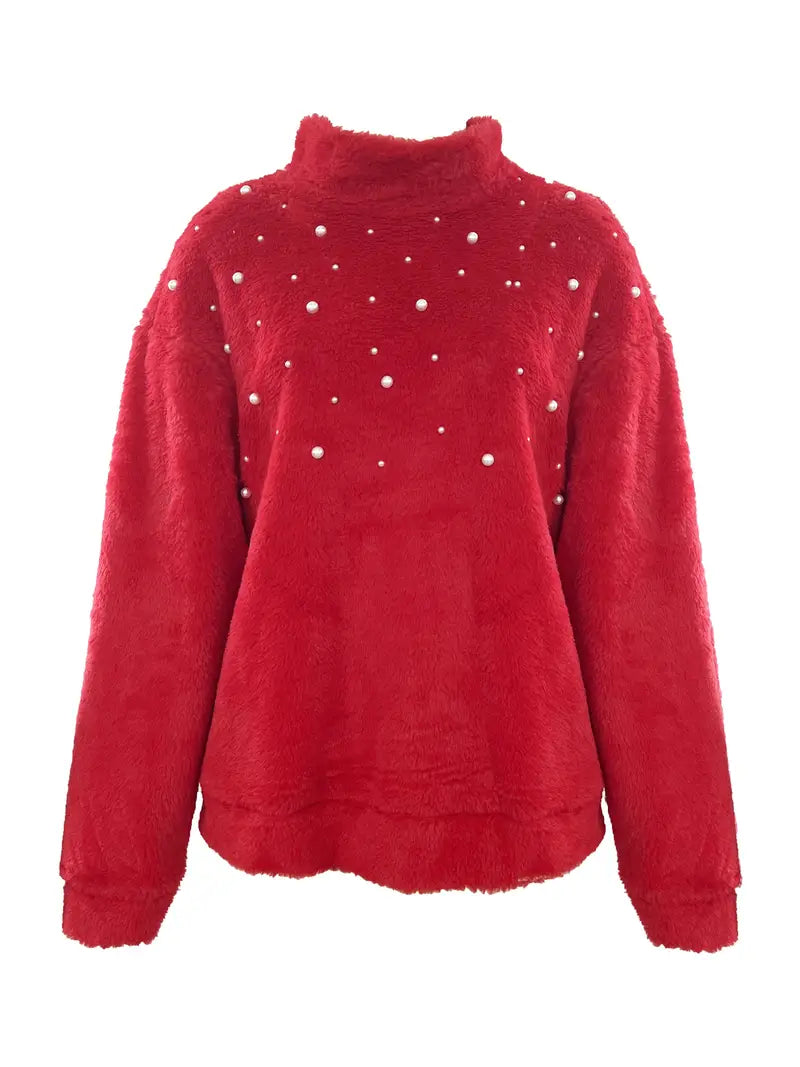 Pulóver je ozdobený štýlovými perlami na výstrihu a dodáva vašim každodenným outfitom nádych elegancie.