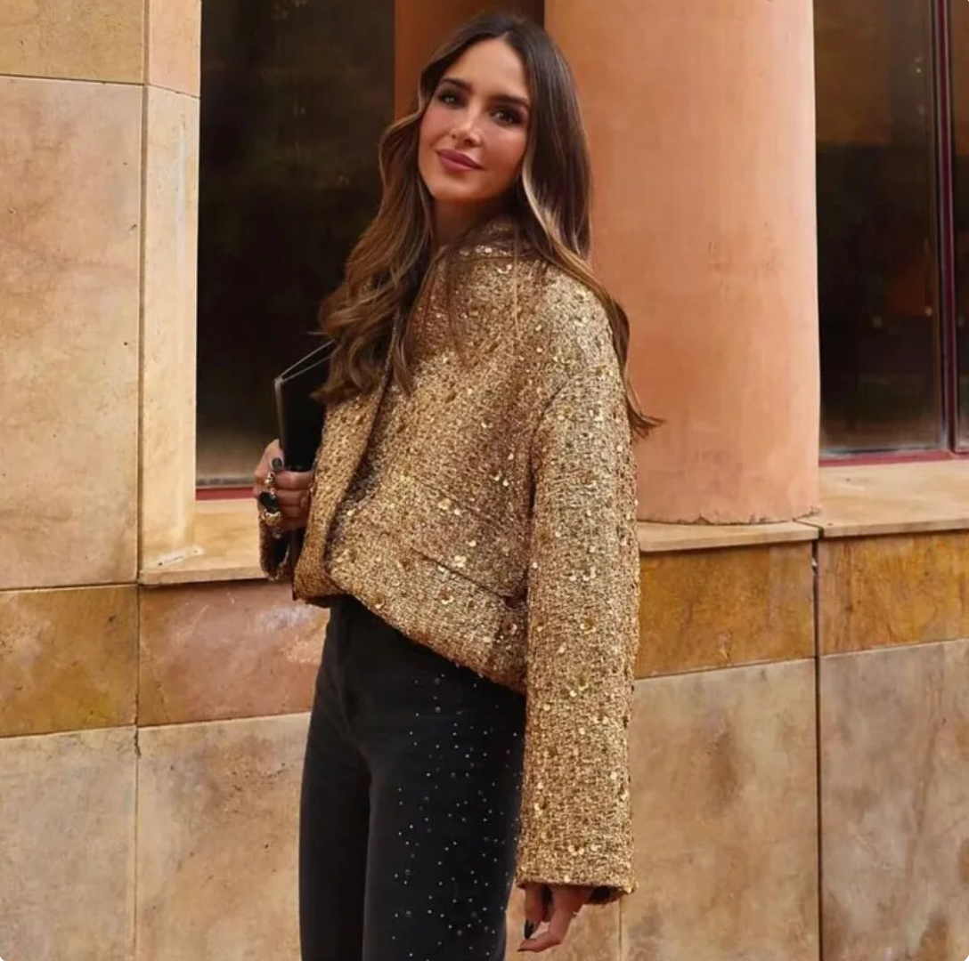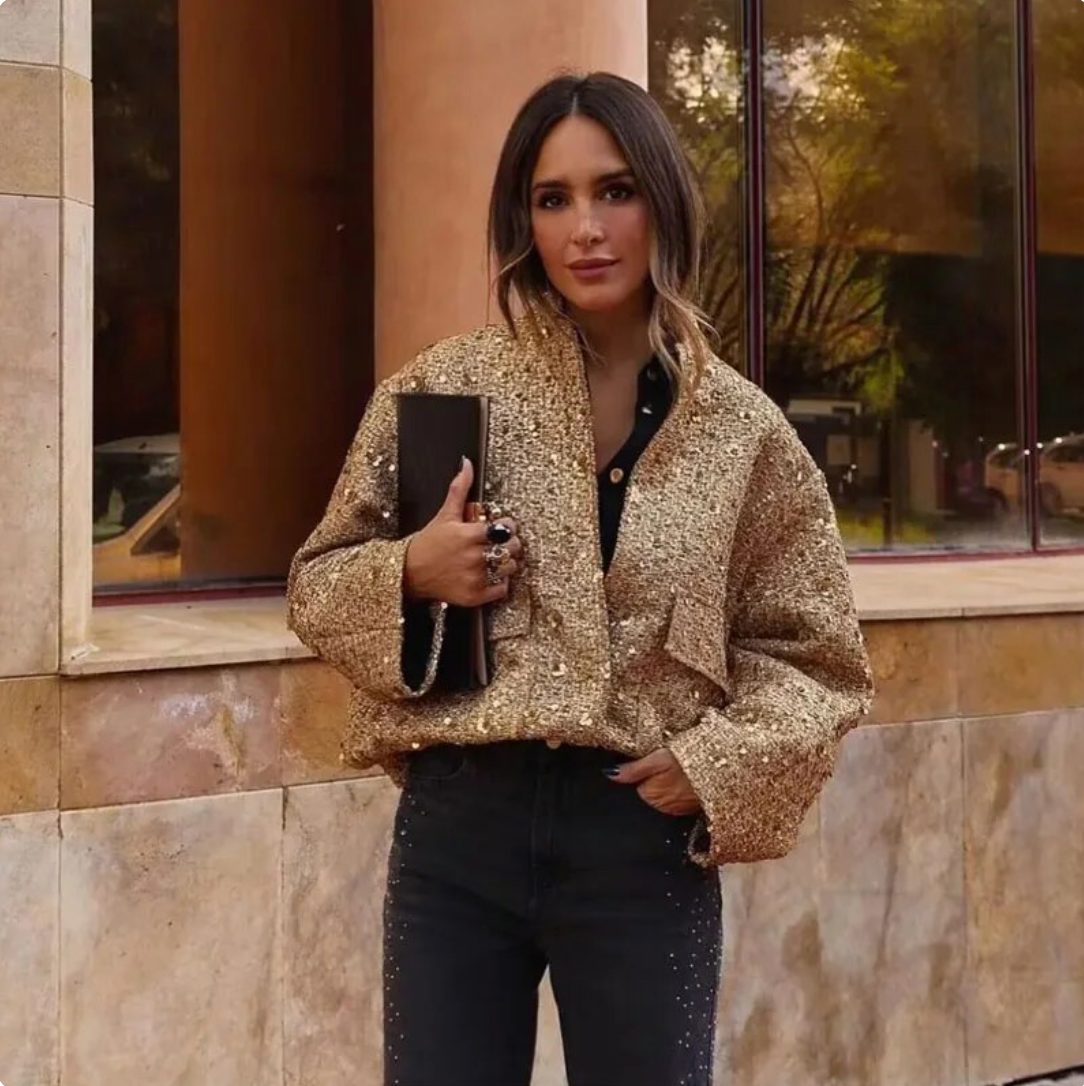 Vstúpte do centra pozornosti so zlatým kabátom Jeanne – pretože si zaslúžite žiariť!