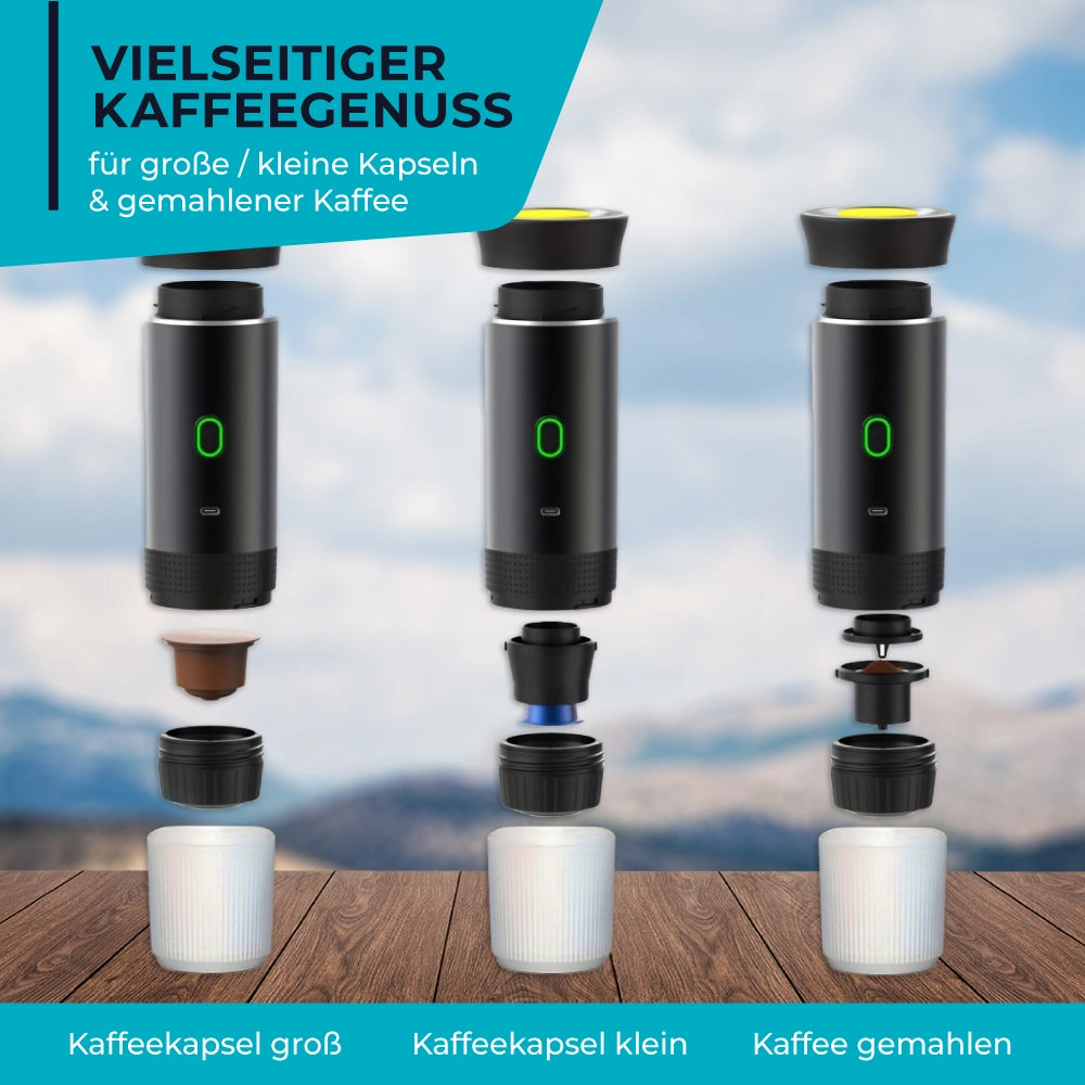 Vďaka svojmu praktickému dizajnu sa kávovar ľahko zmestí do tvojho batohu alebo cestovnej tašky. Či už na kempovaní, na cestách alebo v kancelárii – tvoja dokonalá káva je vždy po ruke.