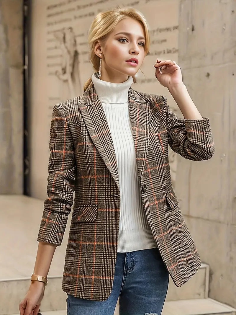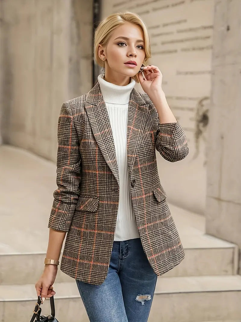 ✔ Nadčasový dizajn: Klasický károvaný vzor vytvára rafinovaný vzhľad, ktorý pretrváva trendy a zabezpečuje, že Lira blejzer zostane základným kúskom vo vašom šatníku.