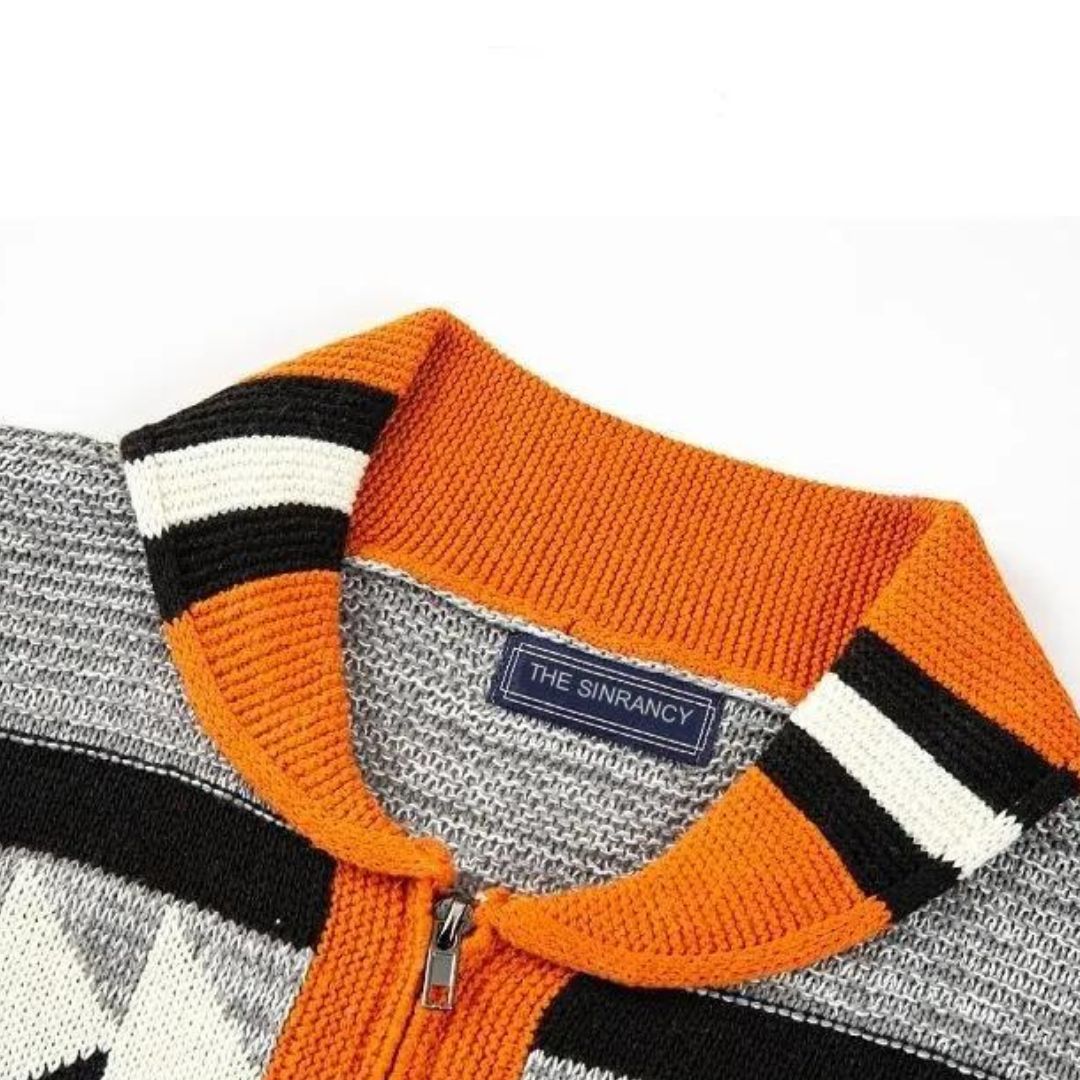 Pletený sveter s kmeňovým vzorom a zipsom - Nikos