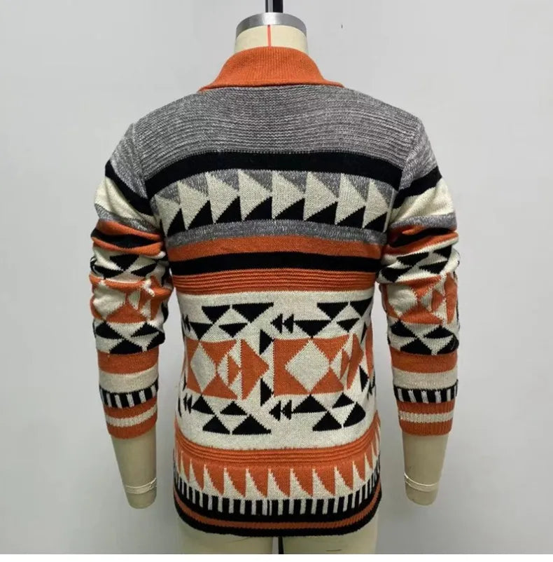 Nikos je perfektný sveter pre mužov, ktorí oceňujú jedinečné vzory a moderný komfort. S výrazným tribal vzorom a praktickým zipsom ponúka tento sveter štýl aj funkčnosť.