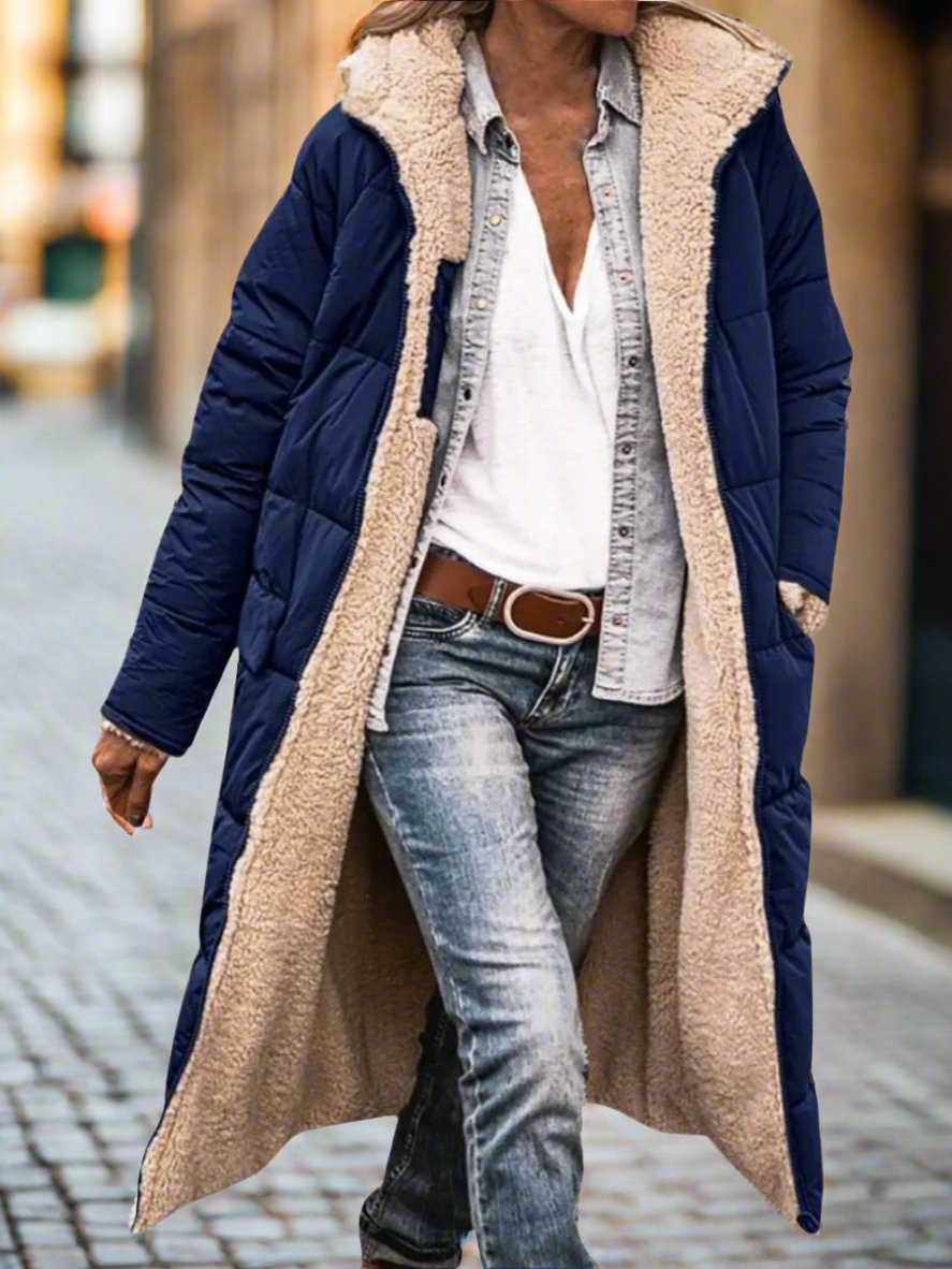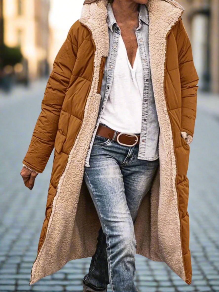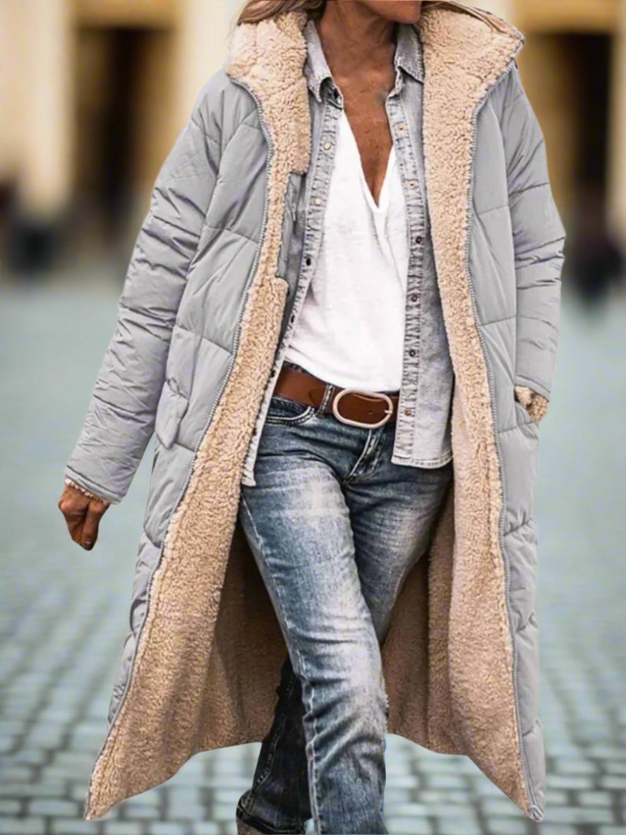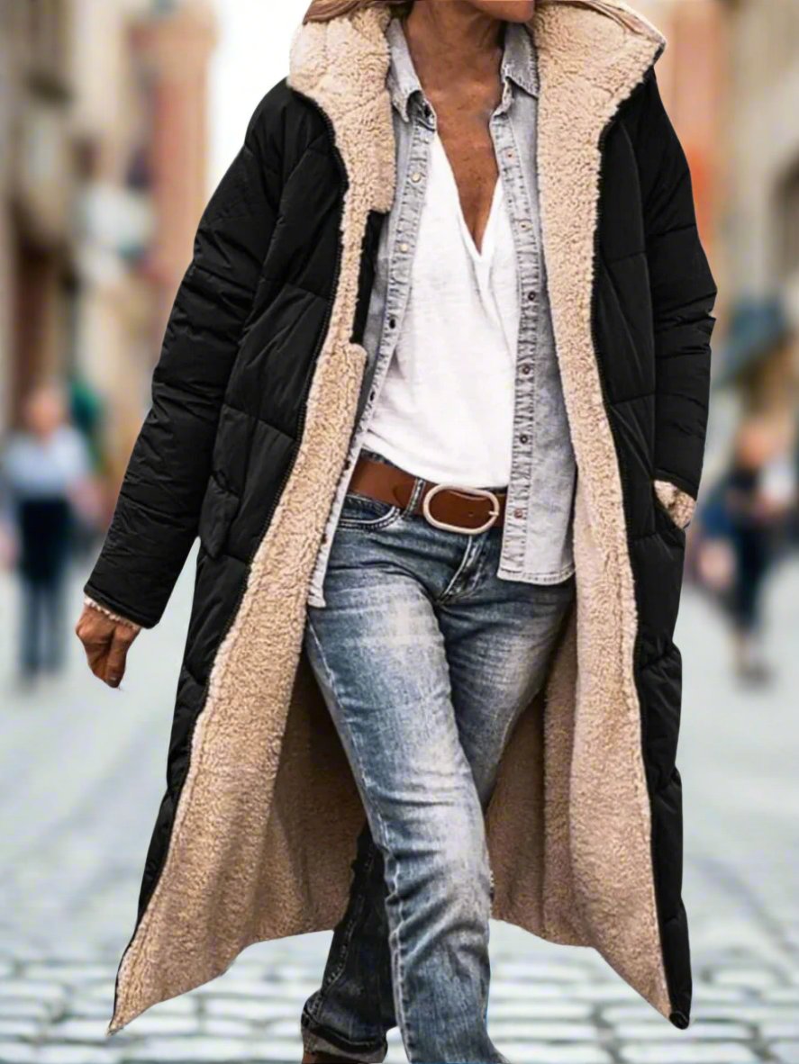 Zostaňte túto zimu v teple a štýle so Sylviana Jacket, luxusným dlhým zimným kabátom, ktorý je ideálny na chladnejšie mesiace.