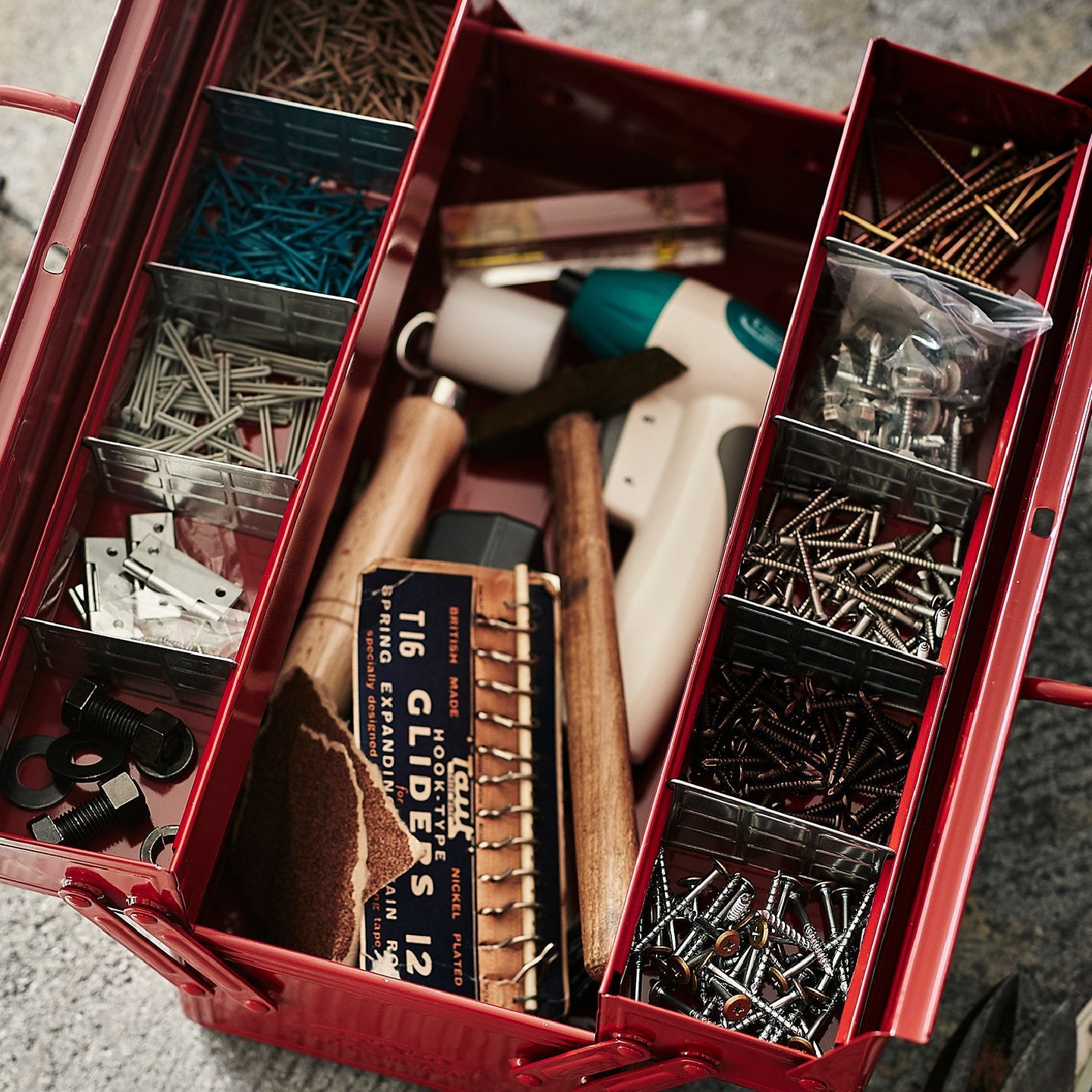 Vyrobený z jedného kusu ocele, poskytuje dlhodobú ochranu bez ostrých hrán. S voľne neseným viečkom, praktickými priehradkami a otvorom na zámok je ideálny na bezpečné uloženie náradia a príslušenstva.