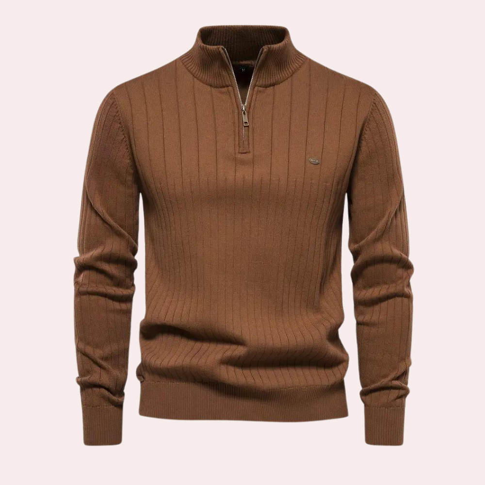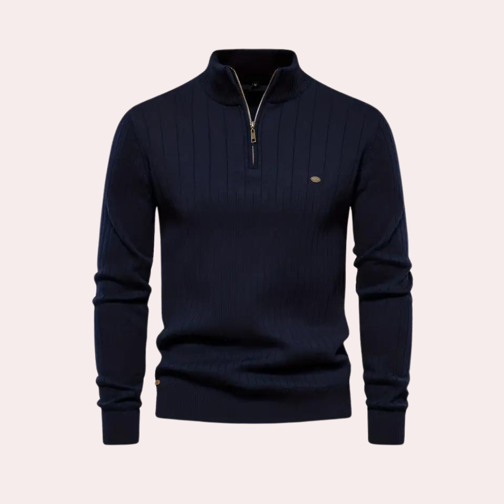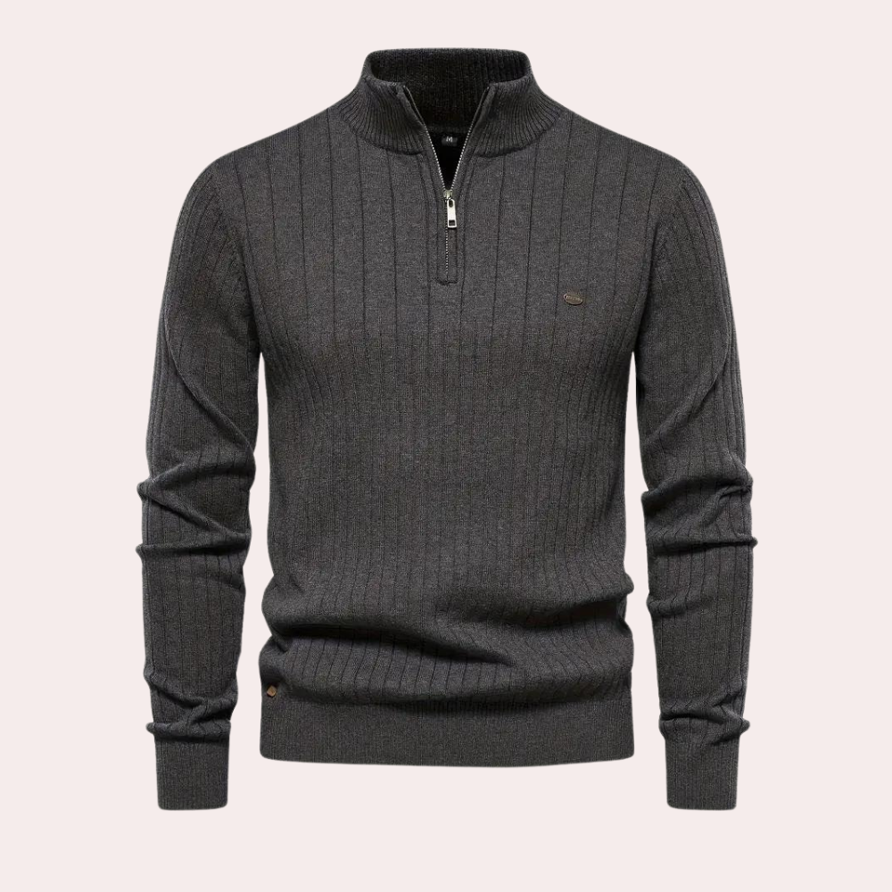 Tu máte náš Saber Relaxed Pulóver so zipsom pre mužov. Tento pulóver je pohodlný a štýlový na vychádzky, ale aj na doma na pohovke. Pulóver je vyrobený z pohodlného materiálu, ktorý je vhodný na jar, jeseň a zimu.