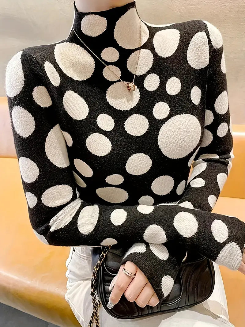 Štýl: bodkovaný pulóver s okrúhlym výstrihom