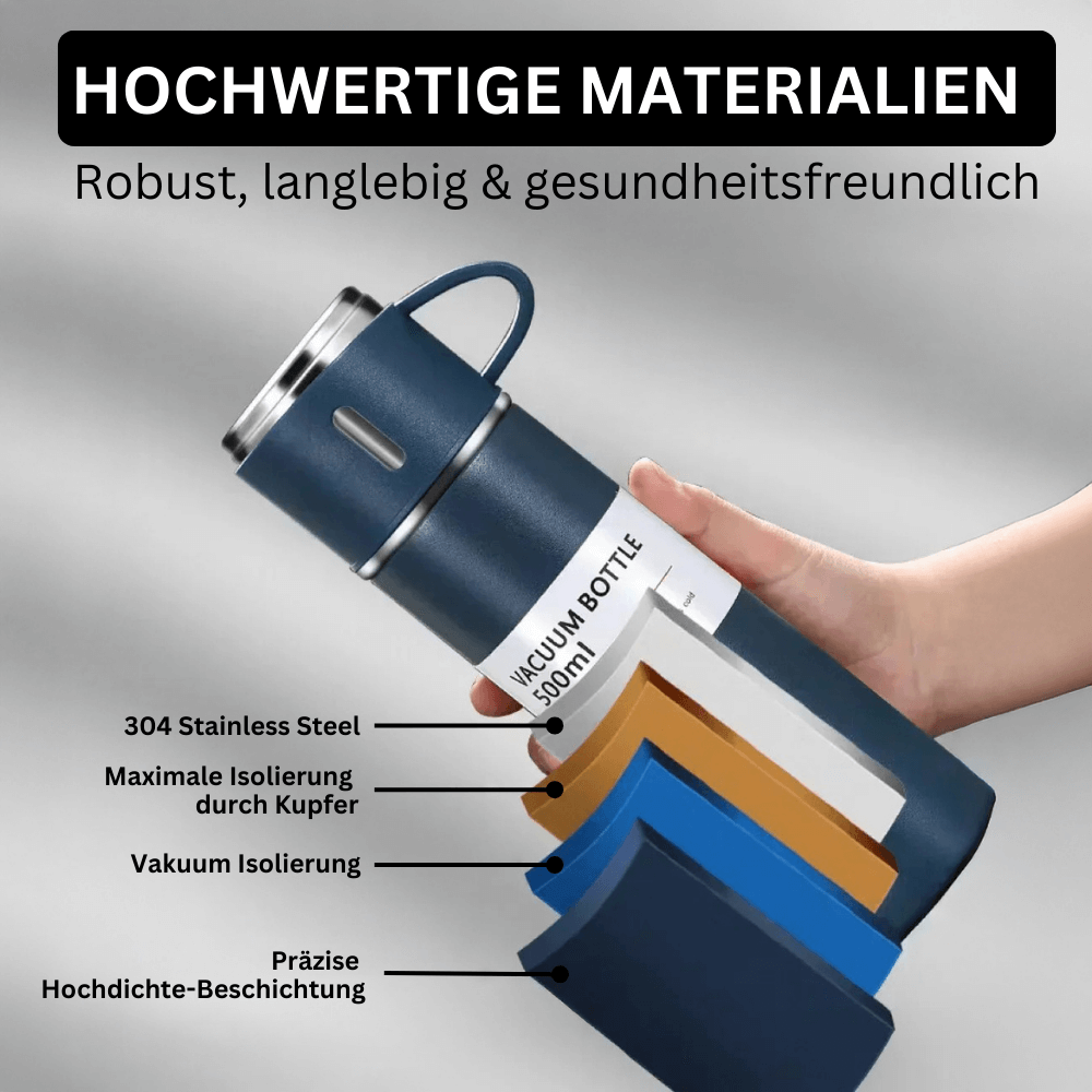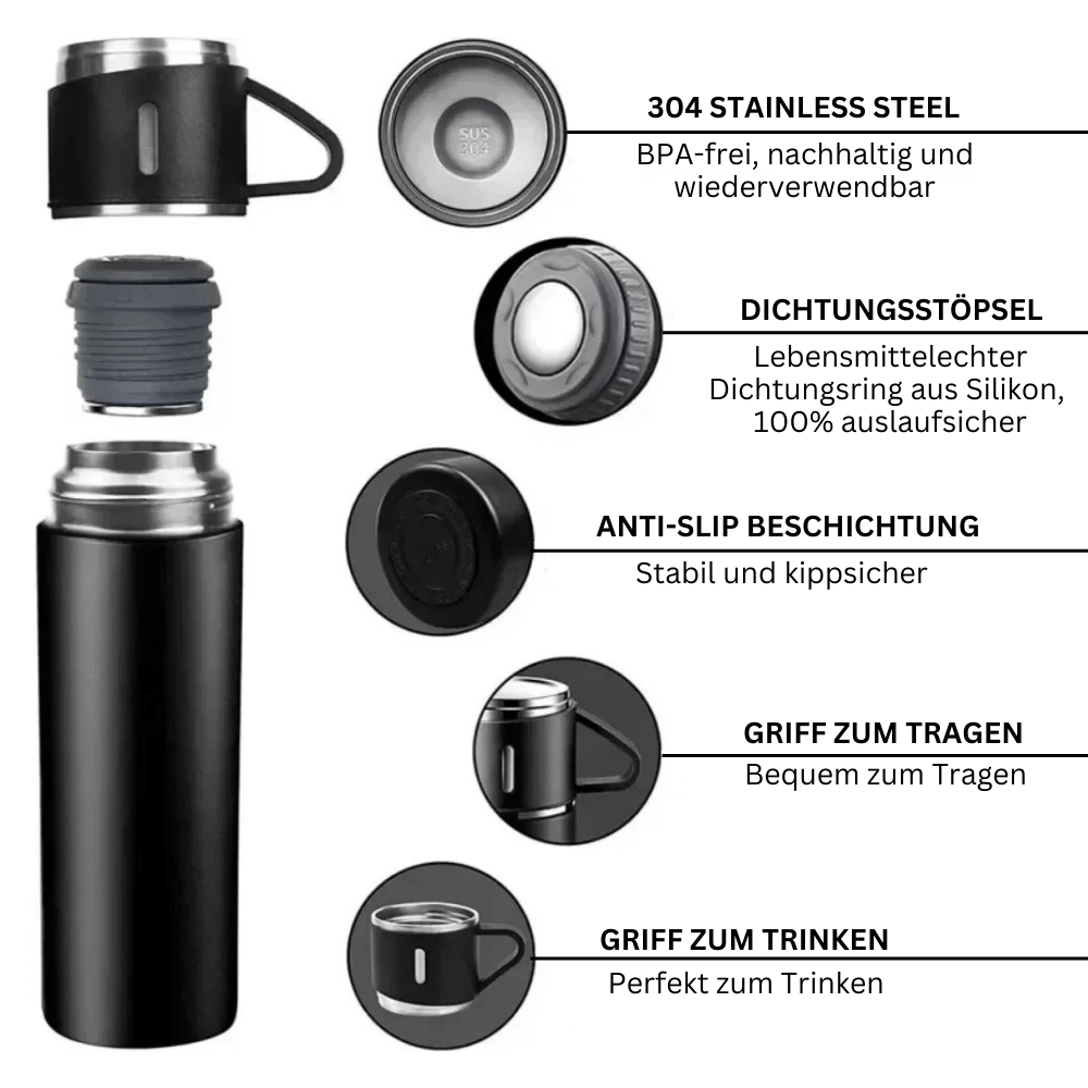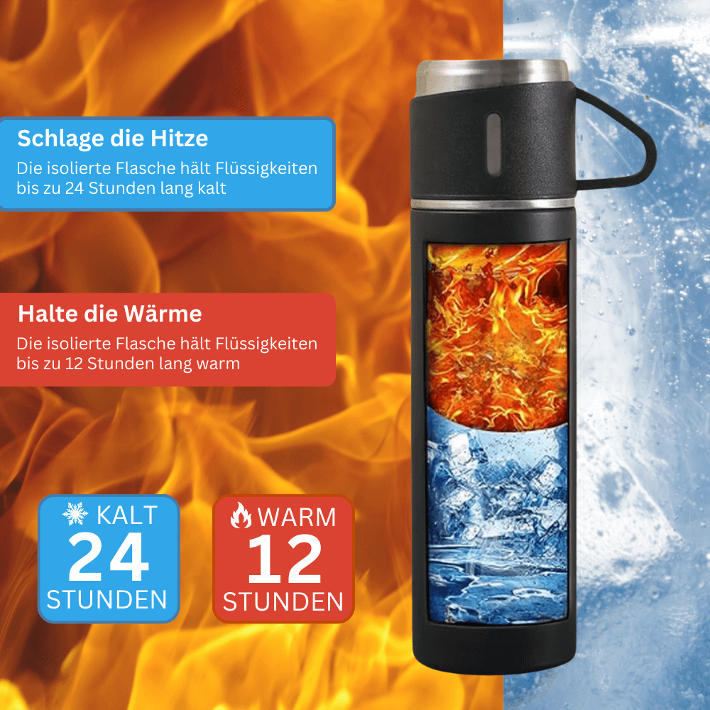 Či už horúca káva na ceste do práce, horúci čaj v horách alebo ľadovo chladená voda pri turistike – vákuovo izolovaná nerezová termoska je tvoj perfektný spoločník. Udrží tvoje nápoje až 12 hodín teplé a 24 hodín studené – či už v bežnom dni alebo na ďalšom dobrodružstve.