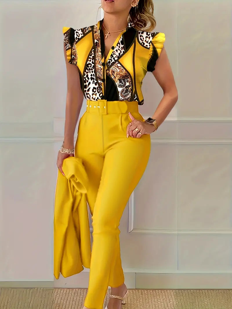 Dvojdielna súprava Azala s ležérnym leopardím vzorom je určená pre všetkých, ktorí chcú urobiť módne vyhlásenie. So štýlovým topom a pohodlnými nohavicami je táto súprava ideálna na relax alebo ležérne výlety. S výrazným leopardím vzorom dodáva Azala vášmu každodennému šatníku zábavný nádych.